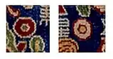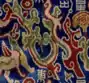 “五星出东方利中国”织锦属于汉代蜀锦,工艺为“经丝彩色显花”,即“经锦”。经丝彩色显花仅使用一色纬线,经线则会使用三到五种颜色,经线颜色越多,密度便越大,织工艺难度随之增加。经锦工艺所织造的图案通过直线排列色彩,最终形成完整的图案,汉代织锦纹饰以云气动物纹锦为绝大多数。常见的二重平纹锦、三重平纹经锦、四重平纹经锦采用的是不同比例表里经丝比织就。经锦以五种颜色为主,通常使用分区换色的方法让一块锦上出现五种不同的颜色。[刊 4]