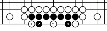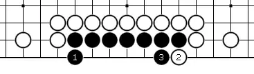 圖三,七死八活(黑棋部分)。黑棋先手活。