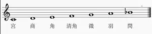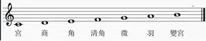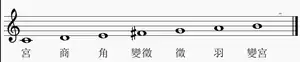 在五聲調式的基礎上加入變宮和變,可以得到雅樂調式,它又叫做雅樂音階、古音階。[1]:146