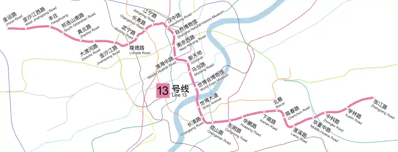 上海轨道交通13号线,前称世博专线,是一条连接中国上海市嘉定区金运路站至浦东新区张江路站,是上海地铁运营的东西走向地铁线路,全长38.83公里,共设31座车站,于2010年4月20日作為世博专线通车运营,世博结束后停运,2012年12月30日重新通车。