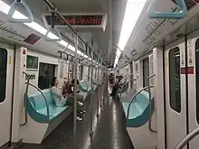 - 列车车身以蓝灰、银、抹茶绿为主色调,侧边有一条抹茶绿色的色带,设有LED路线图。