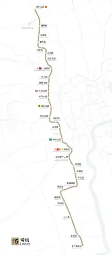 上海轨道交通15号线,为上海市西部的南北向径向线,由宝山区的顾村公园站连通至闵行区的紫竹高新区站。本线路具备最高等GoA4级自动驾驶功能,也是上海市一次性开通里程最长的线路。