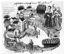 兴建木桥。右边是愤怒的哈特曼伯爵。