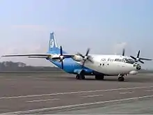 一架丝绸之路航空的安托諾夫An-12在卢森堡-芬德尔国际机场,2004年