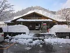 車站大樓是一座木屋風格建築物,大樓內設有特產直銷處和觀光詢問處。大樓鄰接道之驛九頭龍(和泉親睦會館)。