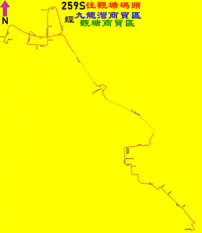 - 259S線由屯門(龍門居)開出後依259X原線駛至龍門路後,改經青雲路、杯渡路、屯門鄉事會路、屯門市中心巴士總站、屯門鄉事會路、海珠路、海皇路,然後返回皇珠路259X原線。259S線之具體停站請參考資訊框[3]