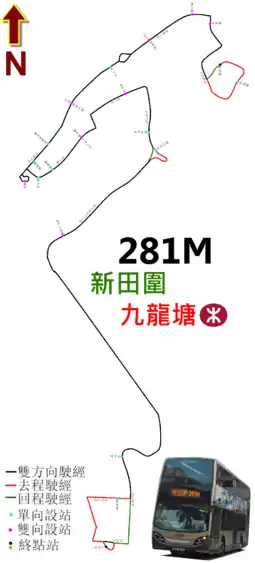 九龍巴士281M線是香港的一條巴士路線,來往新田圍及九龍塘站,提供新田圍邨、秦石邨、大圍、田心圍、顯徑邨及隆亨邨來往九龍塘的接駁港鐵巴士服務,只於星期一至五繁忙時間提供單向服務。而281線則是281M線之全日服務特別班次,循環來往新田圍及大圍站,提供新田圍邨和秦石邨的接駁港鐵巴士服務。