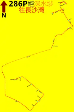 | 途經 | 隆亨邨、新翠邨、大圍、香粉寮 (美田邨、美林邨)、青沙公路、深水埗、長沙灣 |
