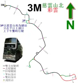 - 2005年8月22日:為更有效服務慈雲山居民及確立正副路線定位,3M及3P互掉總站;3M線改為往來慈雲山北及彩雲,途經慈雲山南巴士總站;3P線則縮短至慈雲山南巴士總站。兩線收費維持不變。(註:類似改動計劃曾經在2004年8月被提出並到達即將實施階段,唯慈雲山南居民反對而被延遲[1][2])