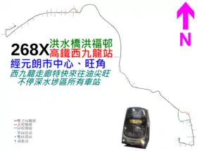 - 268X提升為全日服務,全面取代原有68X線旺角南、油麻地及佐敦來往元朗市及洪水橋之服務