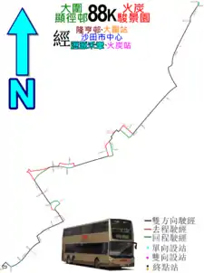 | 途經 | 隆亨邨、大圍、沙田市中心、瀝源邨、禾輋邨、火炭 |