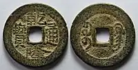 在西山叛亂將復興黎朝從越南北部趕走後,乾隆皇帝征安南並復興黎朝。這支軍隊由兩廣總督孫士毅指揮。1788年11月,兩支軍隊入侵安南,一支由廣東人組成的軍隊從廣西進軍,另一支由武大靖將軍率領從雲南進入,這些軍隊與忠於後黎王朝的安南士兵合作。這些軍隊在幾次戰役中輕鬆擊敗了西山王朝,並於 1788 年 11 月 19 日占領了昇龍(現代河內),恢復了黎昭統皇帝的統治。光中帝的軍隊奪回河內並將漢軍和復興黎軍驅逐回中國邊境後,雲貴總督富綱被選為軍隊首領,返回越南並締結了承認革命政府的休戰協議。在此期間,雲南省鑄造了乾隆通寶特製錢幣,作為對參與此次入侵的中國軍隊的酬勞,錢幣背面刻有「安南」(太平南方)字樣。[1]