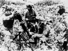 國民革命軍第88師步兵在淞滬會戰中使用二十式82公釐迫擊炮反擊日軍