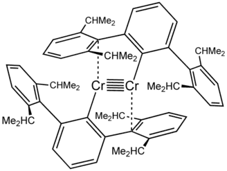 相反地, 「2,6-[(2,6-二異丙基)苯基]苯基」配體,或简单的三联苯配体均可以使一个拥有五重键的铬二聚物稳定,而这些化合物在200℃才会分解。[1][2]