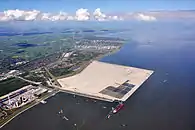 亚德港采用围堰吹填沙的方式建造,现阶段港区包括130公顷、设计吞吐能力270万标准箱的集装箱码头和160公顷的亚德港物流园。集装箱码头的运营商为总部在不来梅的EUROGATE。