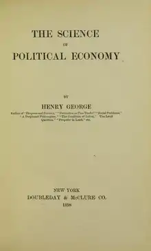 - 《政治經濟科學》(The Science of Political Economy, 1898)
