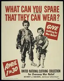 亨利·凱薩是早期倡導將美國援助帶給那些在歐洲遭受納粹迫害的人。 1940年,在當時保持中立的美國進入第二次世界大戰的前一整年,凱薩擔任國際戰爭救濟(英語:)聯合衣服收集中心(英語:)的國際主席,為希特勒在歐洲侵略下的難民提供急需的衣服,當時美國仍然是“孤立主義者”。[5]