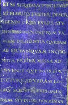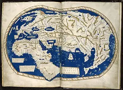 - ETSI STRABO AC PTOLEMEUS ET PLERIQUE VETERUM DESCRIBENDI ORBIS FUERE STUDIOSISSIMI NOVORUM TAMEN DILIGENTIA QUEDAM AB EIS TANQUAM INCOGNITA PRETERMISSA ADINVENIT QUE NOS HOC PICTURE AD VERAM LOCORUM SCIENTIAM EXPRIMENDAM STUDIOSE IUNXIMUS
