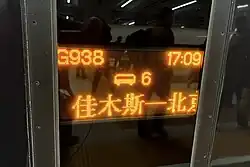 | 终到时间 | 佳木斯站:22:01(G949次) 北京朝阳站:17:08(G938次) |