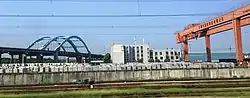 江苏省无锡船厂承建锡宜高速公路(S48)上跨度90米的京杭运河大桥拱肋钢质部分。该部分于2002年3月18日合拢[1],桥梁外型呈半圆弧状,高度32米,是无锡内河航道上单孔跨度最大的桥梁,为钢铁系杆拱结构桥梁,全长1021米,一桥双跨京杭大运河及沪宁铁路[2]。
