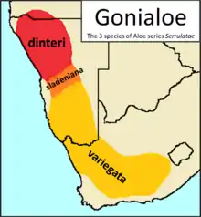 | 三种什锦芦荟属物种的分布图。 G. dinteri G. sladeniana G. variegata | |