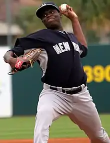 ![]() 德保拉在2015年春季訓練中為紐約洋基隊投球 | |||