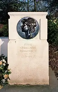 - 1959年,在克里斯塔貝爾去世一周年之後,英國在維多利亞塔公園原來的艾米琳·潘克斯特的紀念雕像右側下方增加了克里斯塔貝爾的側面頭部雕像。7月13日,時任英國内閣成員的大法官基爾穆爾子爵爲此雕像揭幕(右圖)。
