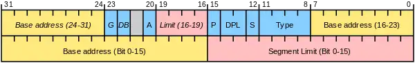 全局描述表用于内存地址的转换。所有程序的内存访问都需要用到GDT中的有关内存区域即x86内存分段的信息。访问GDT需要使用segment selector和segment offset。处理器使用segment selector为索引查找GDT的条目。当适当的条目找到后,处理器将会做一系列的检查,包括检查segment offset尝试访问区间是否在此内存分段内,代码是否有权限访问此内存分段(检查分级保护域权限)等。[1]
