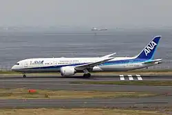 交付在2011年底开始,全日空于当年9月21日接收首架B787,这是世界上第一架交付的梦想客机。全日空于2011年10月26日首飞B787,在东京成田至香港的包机航线上使用[17]。2014年7月28日,全日空成为第二家接收B787-9的航空公司,但与启动用户新西兰航空相比,全日空是最先将B787-9投入商业运营的航空公司,全日空B787-9执飞的第一个航班是日本和美国学童的特别观光包机[18][19]。