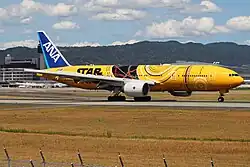 | 波音787-9 | 42 | 6 | — | 48 | 21 | 146 | 215 | 国際线专用,JA873A涂有星際大戰R2-D2特殊涂装,JA872A、JA875A、JA899A為星空聯盟塗裝,JA894A為「皮卡丘彩繪機 NH」特殊涂装,JA871A為「ANA Green Jet綠色環保機」特殊涂装(國際線專用)。 215席主飛歐美長程航線,246席主飛東南亞、大洋洲等中程航線。 |
