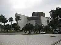 ![]() 圖中棕色建築物即斜八角柱的十三行博物館 |