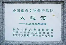 1984年,“永通桥及石道碑”被列入北京市文物保护单位。2013年,永通桥及石道碑作为大运河北京段的一部分,被并入全国重点文物保护单位大运河内。[4]
