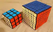 八階魔術方塊有8個角塊,72個邊塊,216個中心塊。八階魔術方塊的總變化數為種變化狀態。