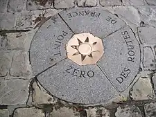 法國的公路零公里標(法語:)位於巴黎西堤島聖母院前廣場。