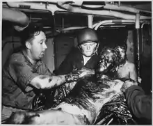 - 斯威夫特舰长在舰船损失报告中记载共有235名官兵获救,其中2人在获救后不久死亡,与此处数据略有偏差。[11]