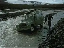 一輛荒原路華109型卡車卡在冰島高地某處河流的河床上。