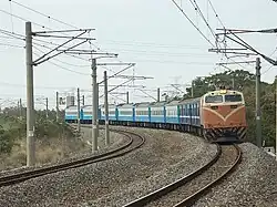 8輛客車+2輛行李車編組行駛的冷氣平快車
