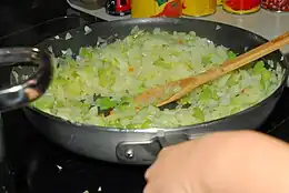 出水(Sweating),在西餐中,指用一點油或是奶油以小火加熱蔬菜,而且頻繁的攪拌及翻動,確保由蔬菜中滲出的水分都蒸發了[1]。出水會讓蔬菜比較嫩,甚至有時會有半透明的外觀[2]。一般若要在液體中烹調食物,會先經過出水[1]。甚至洋葱在加進濃湯烹調之前也會先出水。出水和煸不同,出水用的火會比煸小很多[2],有些也會加一點鹽讓水份釋出,而且蔬菜只會略為變成褐色,甚至不會變褐色[2][3]。
