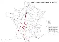利摩日本笃会站通达范围示意图(2016年4月)