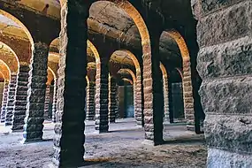 食水減壓缸佔地約4,300平方米,地下圓拱結構直徑約47米,深度約7米[21][25],高海平面70米。缸底、牆身及頂部以水泥建造,為愛德華時代建築[26],並採用古羅馬拱門建築設計,以麻石柱及紅磚拱門支撐缸頂[27]。整個建築共有100條柱,當中22條藏在水缸內,其餘78條外露[28]。建築方式與土耳其伊斯坦堡地下水宮殿拱形結構相近[29]。水務署在1952年加建了混凝土結構[22]。截至清拆工程停工前,被拆毀的部份包括20乘10米面積的天花板及4條柱[30]