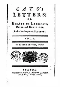 英国共和主义传统中,《加图来信》被视作一部开创性著作。书中的144篇书信最初刊载于《伦敦日报》,稍后刊载于《英国日报》,谴责英国政治体系中的腐败和德性缺失,并警告反抗暴政。