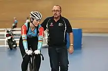 ![]() 澳大利亚场地自行车运动学院教练加里·韦斯特与2013年奥运冠军安娜·米雷斯的合照 | |