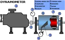 動力計會包括吸收能量單元(或是吸收能量單元以及驅動單元).一般也會有量測力矩以及轉速的裝置。能量單元會有裝在外殼內的轉子。轉子和發動機或待測設備耦合,可以旋轉到測試需要的速度。在動力計的轉子和外殼之間,會有其他裝置產生剎車力矩。產生剎車力矩的方式可能透過摩擦、液體、電磁或是其他方式。