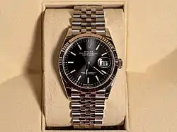 勞力士在1945年推出了Datejust,以慶祝該公司創業40週年[4]。當時Datejust僅適用18k黃金材質,並使用了在1926年上市的防水蠔式錶殼、凹凸表圈和新的銀禧錶鏈[5][4]。Datejust的設計長年有變化,在1955年添加了小窗凸透鏡[6]。