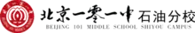 在101中学承办之前,学校的校徽外圈是“北京石油学院附属中学”的中文与英文全称,中心部分的灵感来自于油田上熊熊燃烧的火炬,“石油附中”四字拼音的首字母,则构成了火炬的基座。