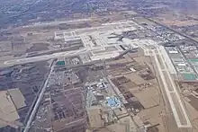 ![]() 北京大興機場和南郊机场的航拍圖,南郊机场位於圖片左上方(不與大興機場的跑道相連) | |||||||||||