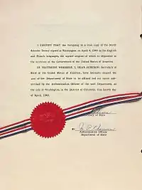 《北大西洋公约》(英語:)是1949年4月4日在美國华盛顿哥伦比亚特区由12国联合签署的条约,最初的12个缔约国即是北大西洋公约组织的创始国。
