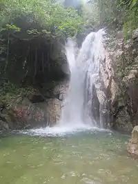 瀑布群入口處為九重山,水源于發財嶺,共有八條主要瀑布,包括千米瀑、孔雀瀑、飞流瀑、惊心瀑、虎口瀑、清心瀑、音韵瀑和双飞瀑,全程2200米。