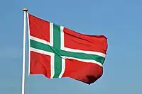 博恩霍爾姆島旗最早於1970年代中期由當地畫家本特·卡斯(Bent Kaas)所設計,並在一定程度上被使用。旗幟主要應用於觀光客購買的紀念品,或軍隊在丹麥本土進行演習和前往國外執行任務,以及德國水手造訪博恩霍爾姆島時。旗幟以丹麥國旗為基礎,加上綠色的北歐十字,據說象徵島上的自然綠地。