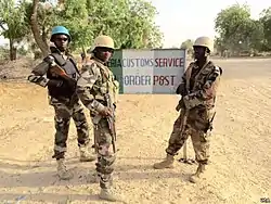 ![]() ![]() 上:執行對抗博科聖地任務的尼日爾士兵,2015年3月 下:尼日利亞「平民聯合特遣部隊」(CJTF)民兵,2015年 | |||||||